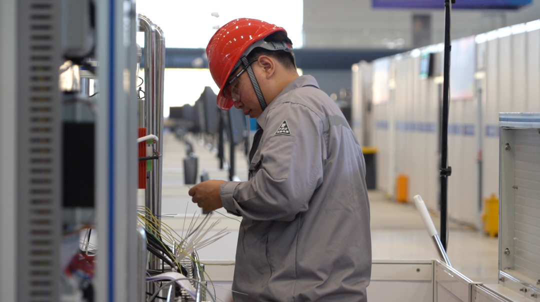 宋文卓比赛中进行端子排接线。融媒体中心记者王寒晓摄