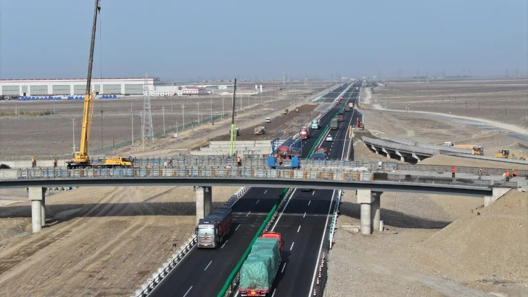 广西路桥集团有限公司G30连霍高速公路星星峡至哈密段改扩建项目第六合同段项目总工程师张万超介绍,目前从标头一到新星互通出疆方向的上面层已摊铺完毕,新星西互通跨线桥也已完成施工,正在进行导改。哈密北互通跨线桥预计10月底开放通车。