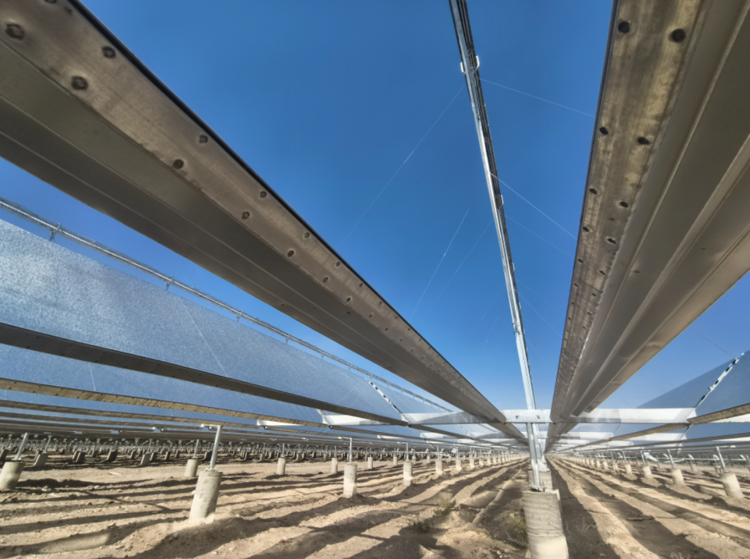中国长江三峡集团新疆分公司哈密“光热+光伏”项目运行负责人金一明介绍,项目总装机容量100万千瓦,由10万千瓦的线性菲涅尔光热电站和90万千瓦的光伏电站组成,是我国目前最大的吉瓦线性菲涅尔光热+光伏集成示范工程。“线性菲涅尔”是光热领域前沿技术,它利用法国物理学家菲涅尔提出的光的反射和折射原理,通过太阳能的转化来发电。项目创新采用光热与光伏联合发电模式,通过运用防凝运行新工艺,保障光热系统在复杂环境下高效稳定运行,有效解决了新能源发电的间歇性问题,大幅提升电力供应稳定性和可靠性,为大规模可再生能源提供了重要的技术支撑。