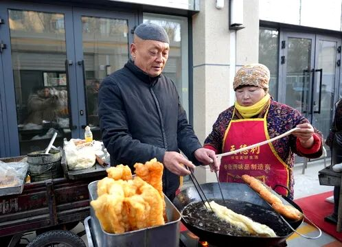 工人市场早市上的早点经营者正在忙碌。融媒体中心记者仲银堂摄