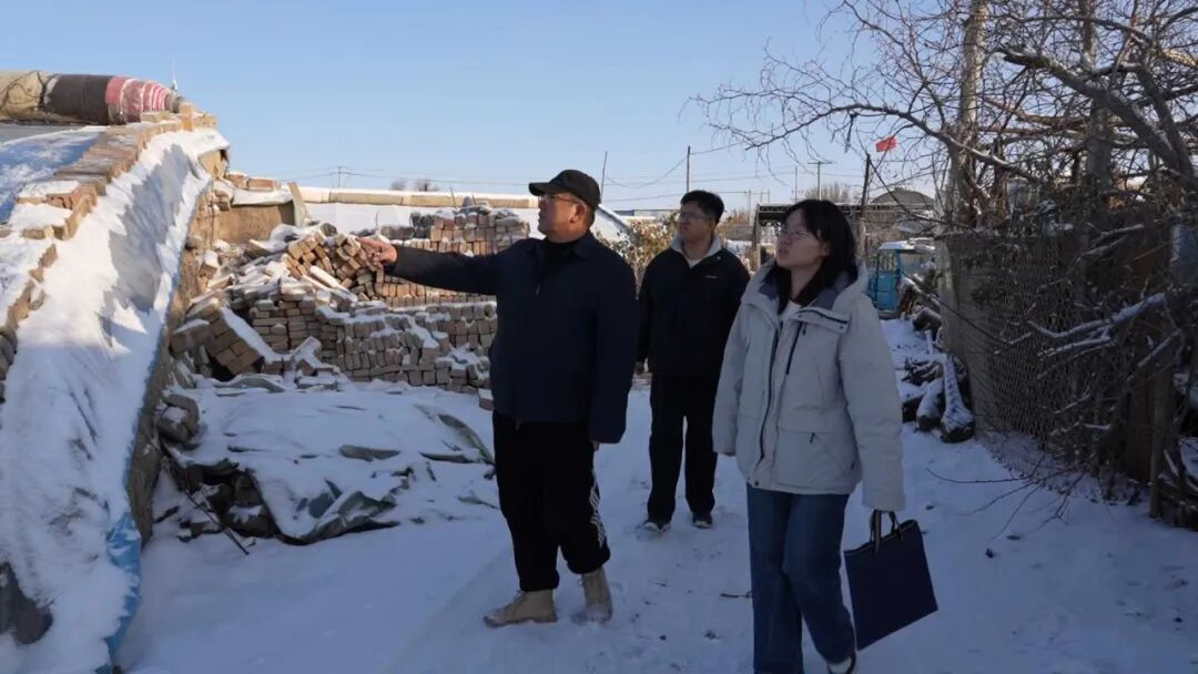 当天,他们先后走进城北街道跃进村、丽园街道新西村等设施农业集中区域,重点检查棚体结构、保温被覆盖、通风口密封等关键环节,详细询问种植户降雪后的温湿度调控、清雪作业及应急加温设备准备情况,现场指导种植户采用软毛扫帚分段除雪,避免积雪过厚压损棚体。