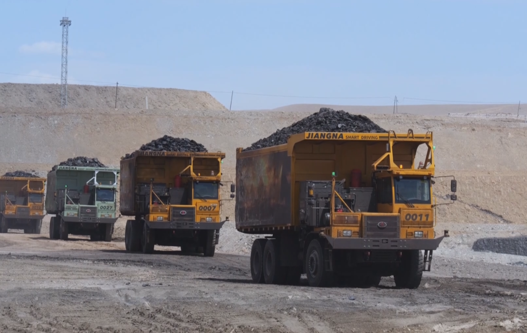 新疆疆纳矿业有限公司兴盛露天煤矿正在运行的无人矿卡。资料照片