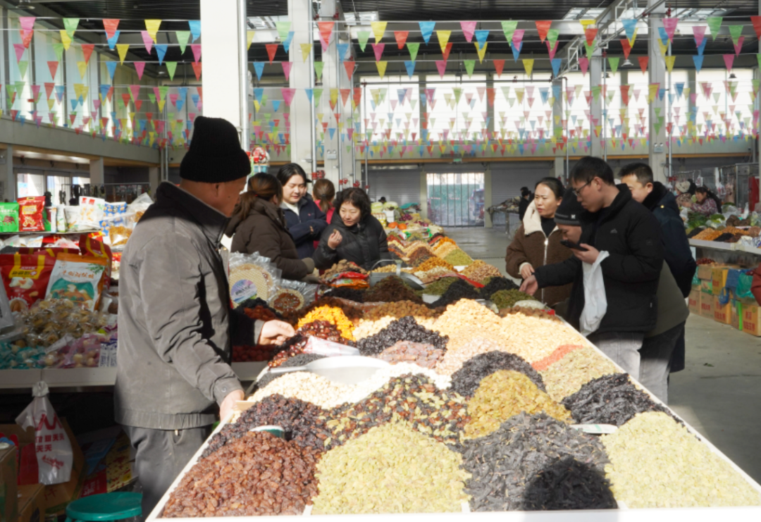 集市上,各类年货一应俱全,尤其是新疆本土特色商品备受青睐。往来市民穿梭在各个摊位前,精心挑选着心仪的年货,脸上洋溢着期盼新春的喜悦;快递收发点前人头攒动,打包、称重、邮寄的忙碌身影,成为年货大集上一道独特的风景线,也彰显着消费市场的旺盛活力。