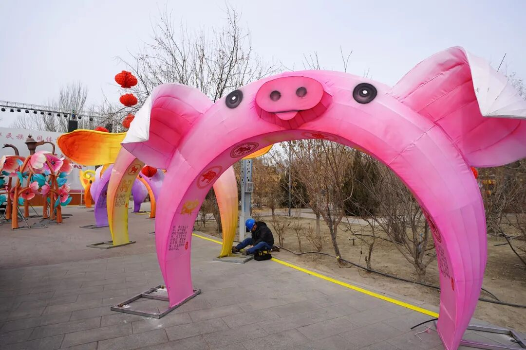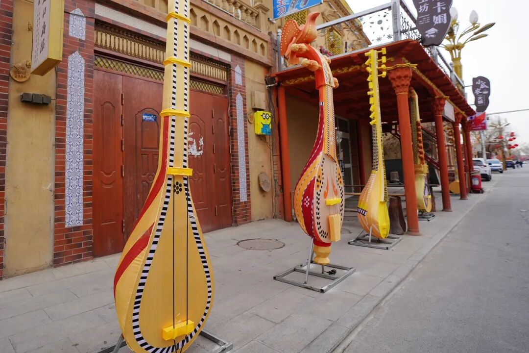 步入古街,浓郁的年味扑面而来,各式花灯已初见雏形,成为街头最亮眼的风景。萌态可掬的十二生肖花灯神态各异、灵动可爱;街巷两侧的乐器造型花灯栩栩如生;烤包子、馕饼、烤肉等新疆特色美食造型花灯更是仿真度极高,色泽鲜亮诱人,仿佛能嗅到阵阵鲜香。