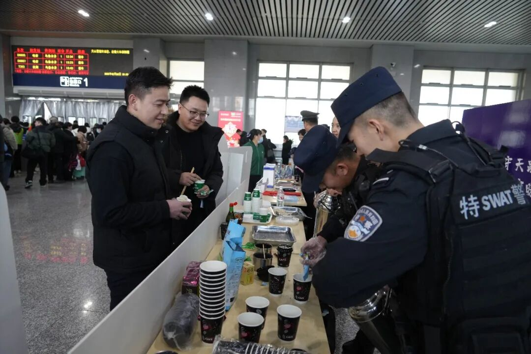 除了常规保障,哈密铁路公安处特警支队以“有温度的陪伴”为理念,在小年当天邀请了4位书法老师现场书写春联和“福”字,免费发放给旅客,同时进行普法及反诈宣传。