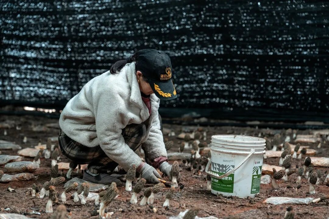 农工正在采收羊肚菌。融媒体中心记者刘培轩摄