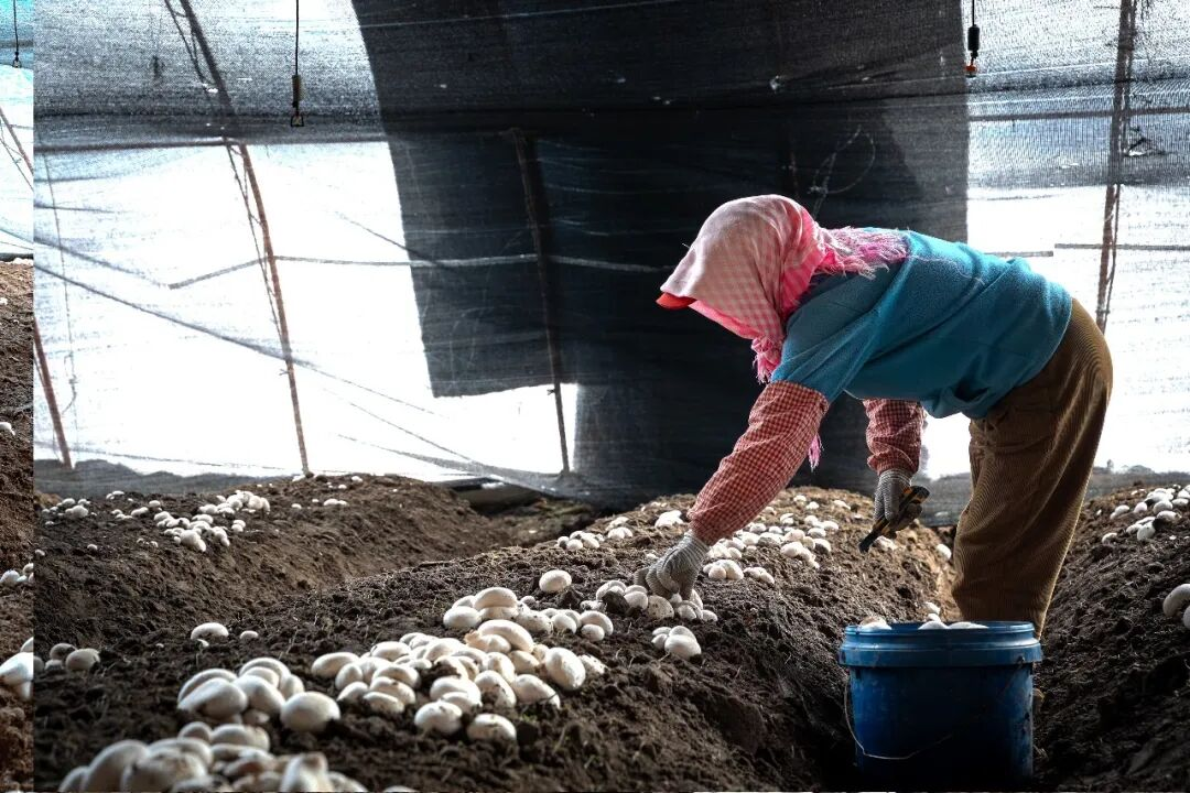双孢菇也同步进入采收旺季。融媒体中心记者刘培轩摄