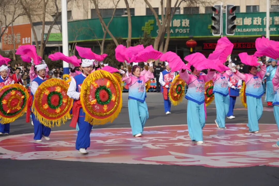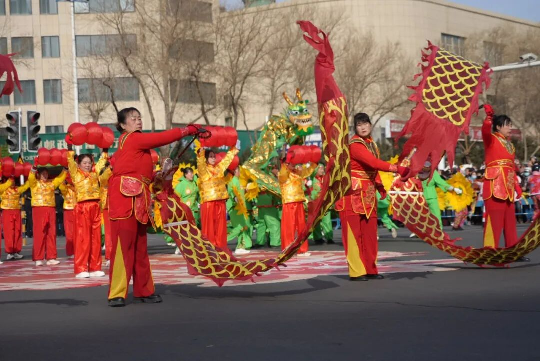 在陶家宫镇的表演队伍中,威风锣鼓气势磅礴,红黄两色巨龙盘旋腾跃,9岁至60岁的各民族高跷表演者如履平地,与少数民族街舞队共同演绎着各族儿女共庆佳节的和谐画卷。西河街道的社火队伍则呈现了老中青少四代同台的温馨场面,非物质文化遗产代表性项目布马舞的萌娃、英姿飒爽的青年灯笼队、气势如虹的安塞腰鼓,将邻里守望的温情与幸福生活的底气展现得淋漓尽致。