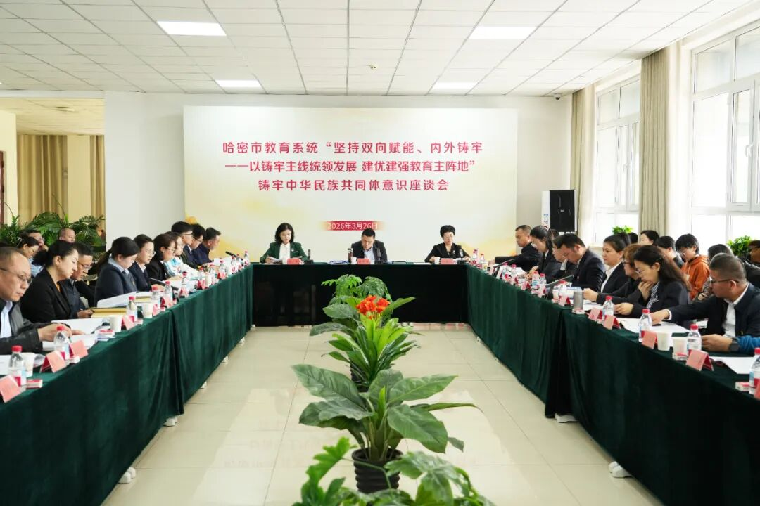 3月26日,哈密市召开教育系统“坚持双向赋能、内外铸牢——以铸牢主线统领发展建优建强教育主阵地”铸牢中华民族共同体意识座谈会。