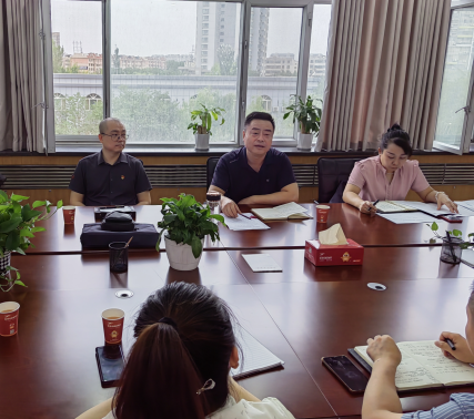 图片二:市国资委党委委员、副主任杨波与市属国有企业办公室主任、党务专干进行讨论交流